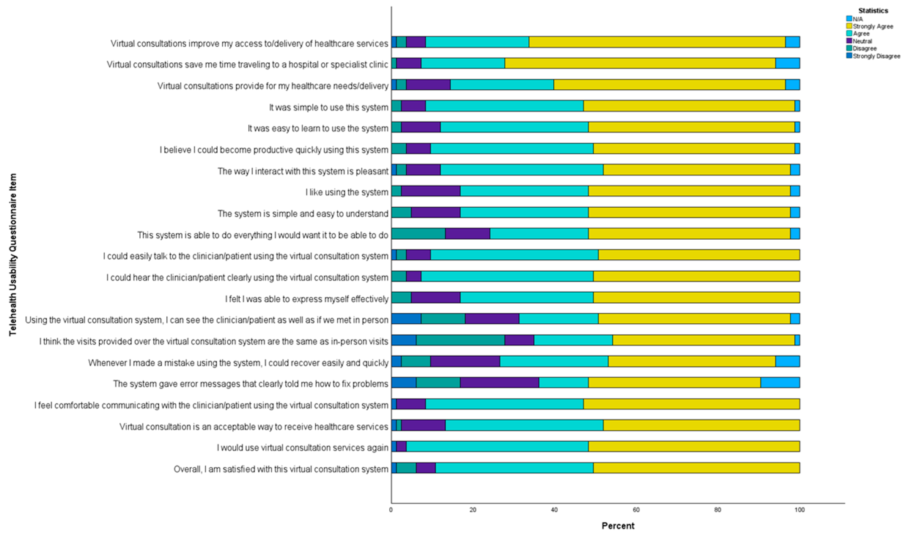 - Parmanto, B.; Lewis, A.N., Jr.; Graham, K.M.; Bertolet, M.H. Development of the telehealth usability questionnaire (TUQ). Int. J. Telerehabilitation 2016, 8, 3–10. [Google Scholar] [CrossRef]