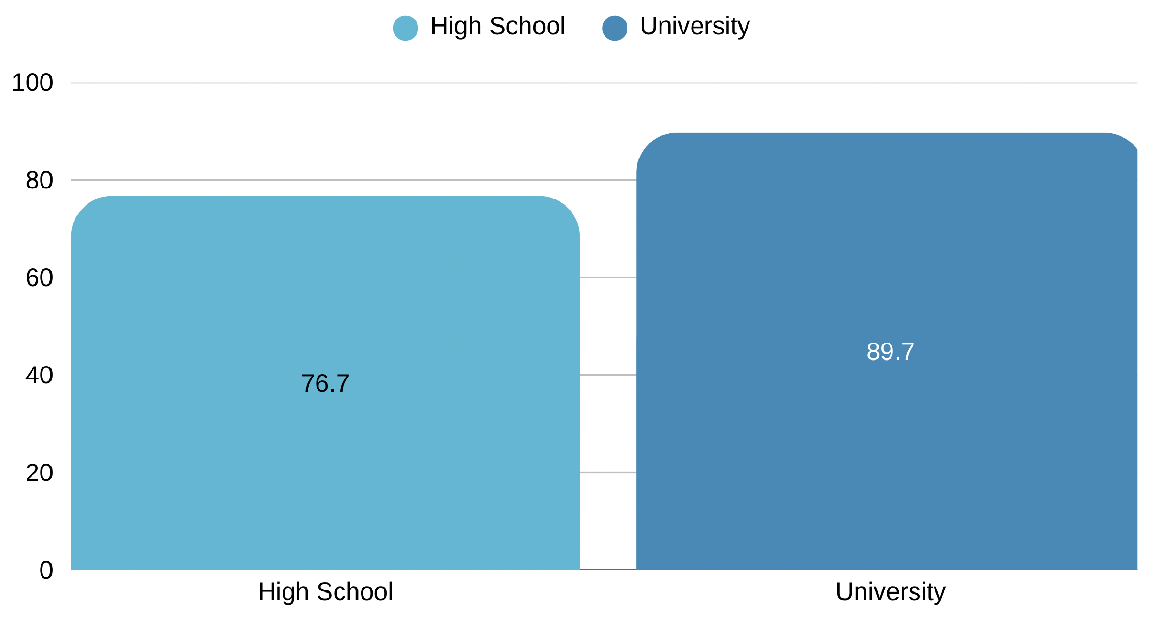 ), indicating modestly greater perceived cognitive benefit among university respondents. Refer to