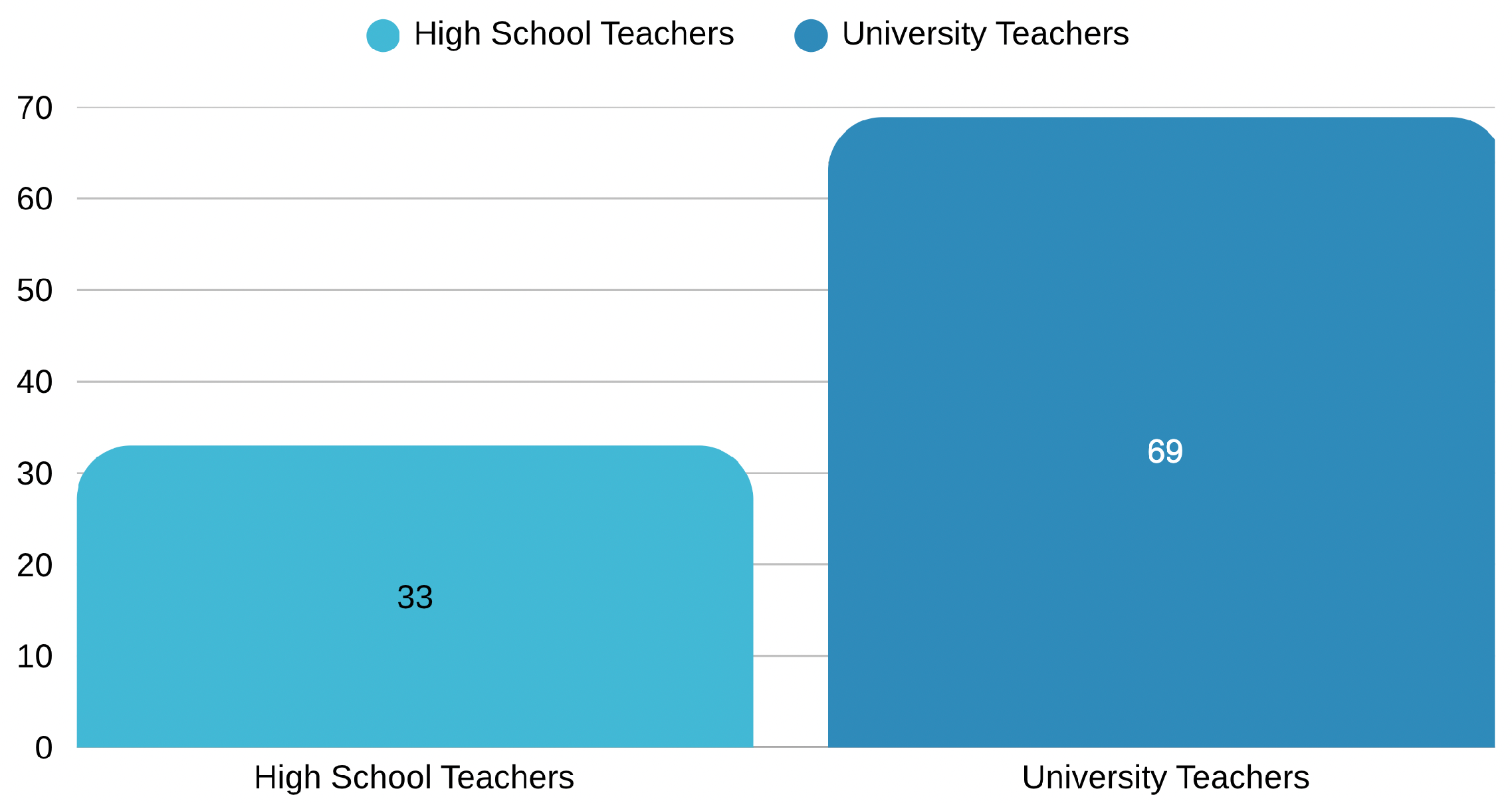 Teacher adoption exhibited clear differences by educational level. Among high school instructors, 33.3% (14/42) reported using ChatGPT or similar tools to generate teaching materials, often citing limited time, lack of institutional guidance, or low confidence in output accuracy. In contrast, among university instructors, 69.1% (47/68) reported using generative AI for tasks such as preparing instructional materials, editing texts, translating documents, and designing exercises or assessments. This difference in adoption between educational levels was statistically significant (
