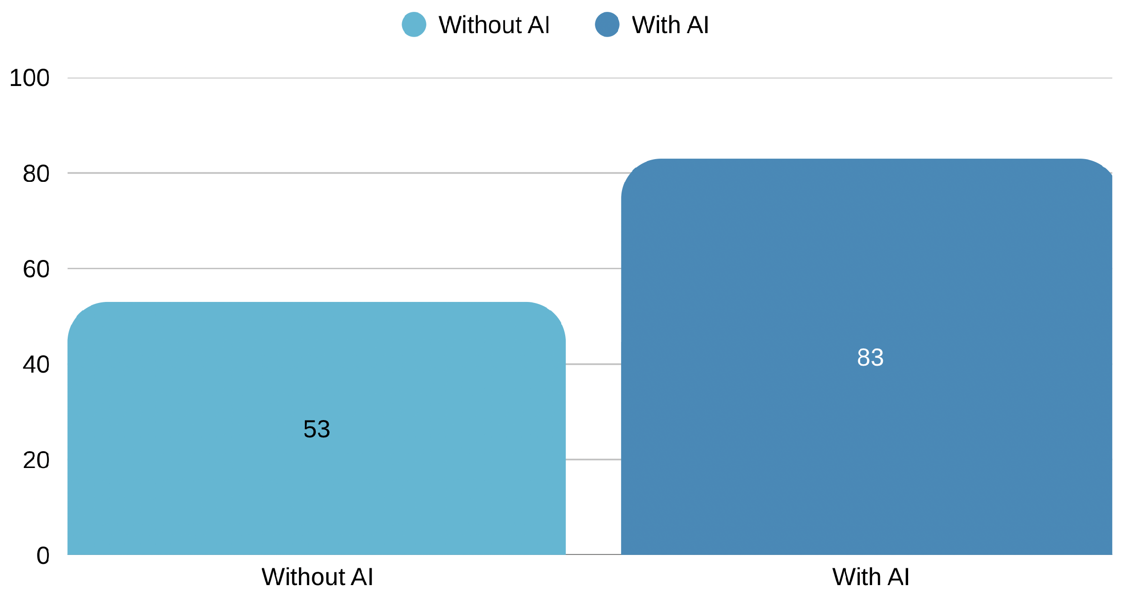 Quantitative results demonstrated clear advantages for AI-assisted participants. The AI-supported group achieved significantly faster completion times (