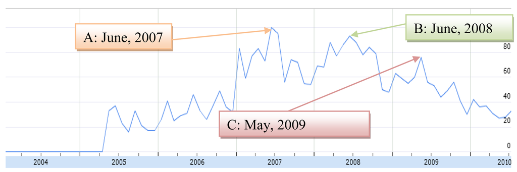 - Google. Google Insights for Search (English). Available online: http://www.google.com/insights/search/ (accessed on 23 July 2010).