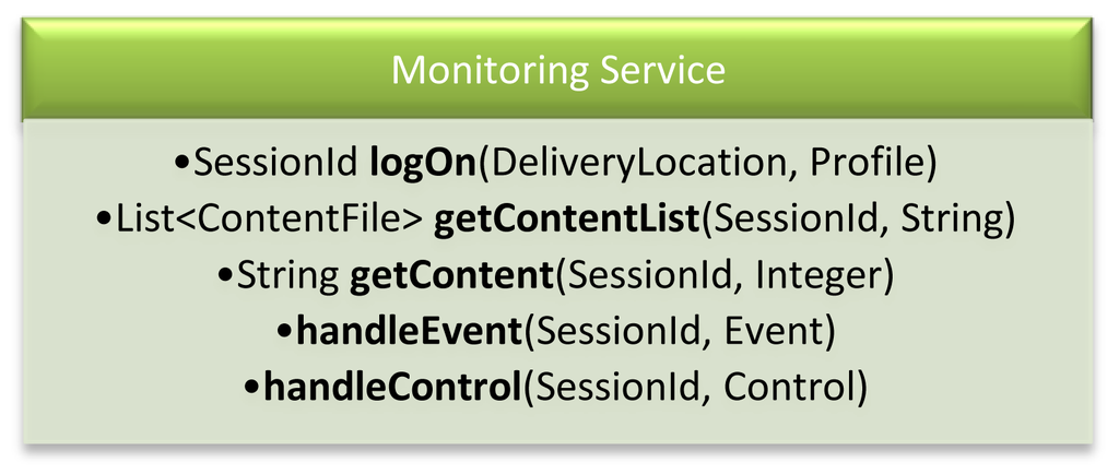 The Monitoring Service interface is intended to cover client login, search operations, handle events and playback control operations.