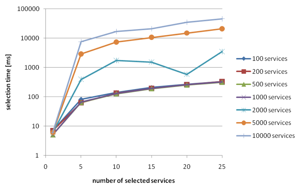 - Berbner, R.; Spahn, M.; Repp, N.; Heckmann, O.; Steinmetz, R. Heuristics for QoS-Aware Web Service Composition. Proceedings of IEEE International Conference on Web Services, Chicago, USA, September 2006; pp. 72–82.
