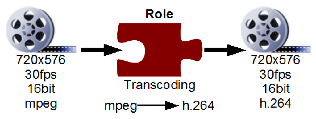 Consider our example of media streaming. It consists of fetching, adapting and delivering the content data to the user. Each step, or role (see Figure 4) manipulates a certain aspect of the content stream, e.g., it changes the encoding of the stream from the content providers high quality mpeg format to a low bandwidth codec used by mobile phones, like h.264.