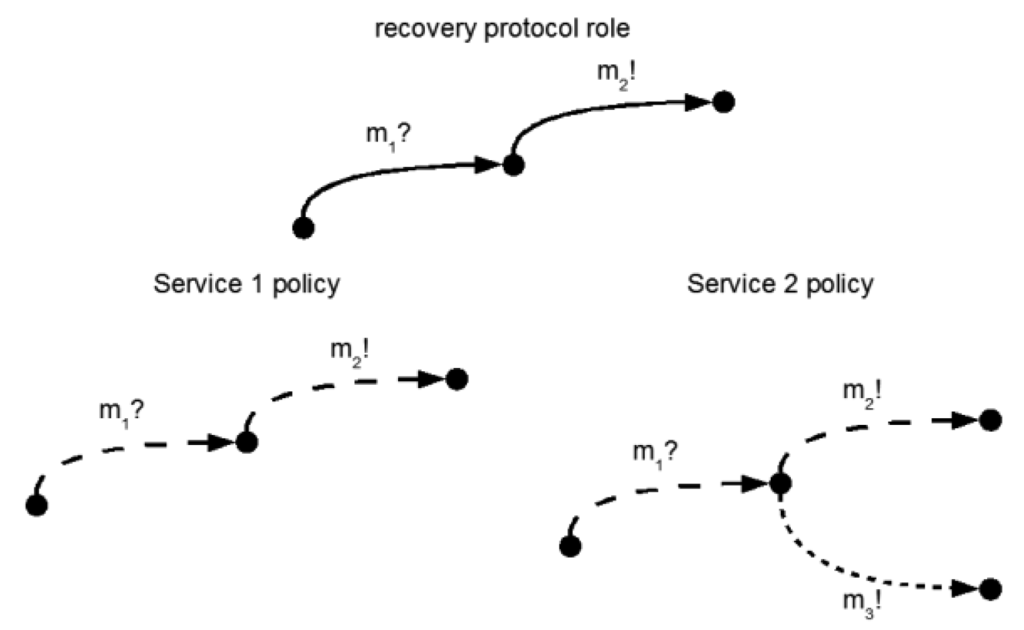 Figure 6 gives an example for one of the service interactions for recovering from a failed service, m? represents incoming messages, m! outgoing messages.