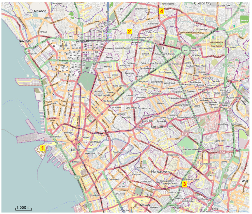 - OpenStreetMaps. Metro Manila. Available online: http://www.openstreetmap.org/?lat=14.6122455596924&lon=121.046161651611&zoom=13 (accessed on 19 September 2011).