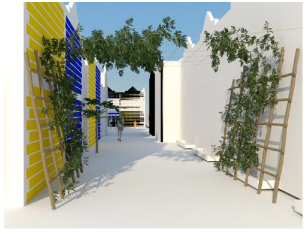 Furthermore, georeferenced 3D models of project areas and design proposals can be placed on a digital globe to add geographical and spatial identity and comprehensiveness to the otherwise untraceable informal worlds in the “haystack” of the megacity. The possibility to fly to new addresses and entries on the digital globe promises to sharpen the sense of orientation and space. The depicted example (Figure 17) represents the described working step in a schematic and symbolic way. Visualized designs in the informal urban context, finally should not look soulless but presumably epitomize a form of dirty imagery [29], being in line with the rough and unadorned face of urban reality.