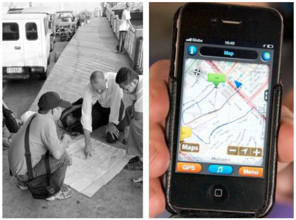 Finding the area of operation – in situ – forms the first step of Grassroots GIS in slum areas. In Manila we faced situations that GK villages only could be found after several indications given by local dwellers on the street – even though we had an extremely experienced driver and a member of the GK organization with us, who regularly goes to the sites (Figure 4). We had the GPS device and iPhone respectively but no basic maps of the GK sites are available so far, showing any street of the searched slum/slum upgrading area.