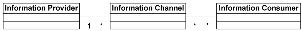 In general, the IIP provides RESTful web service interfaces for both information providers (service providers from the SOA standpoint) and information consumers (service consumers from the SOA perspective) that manage the information flow from information providers to information consumers. These resources are divided into two categories with two main web resource-based uniform resource identifiers (URIs), namely https://root/provider/ and https://root/consumer/. The root part of the URI refers to the domain of the specific IIP deployment. Information is managed in different information channels, and information providers should initially create information channels before being able to pass through information they gather. The IIP provides resources for information providers to register new information channels with varying parameters, to list their information channels, to update/modify their information channels, to publish new information to their information channels and to delete/remove their information channels. In addition, the IIP provides resources for information consumers to list existing information channels, to subscribe to existing information channels, to update/modify their subscriptions to existing information channels and to delete/remove their subscriptions to existing information channels. When an information consumer subscribes to an existing information channel, it should provide a notification uniform resource locator (URL), which acts as an end-point for IIP to deliver notifications of newly published information from an information provider who owns that particular information channel. An information provider can register many information channels, but an information channel can only be associated with one information provider (i.e., the owner). This makes the relationship between information provider and information channel a one-to-many relationship. On the other hand, an information channel can be accessed/subscribed to by many information consumers, and an information consumer can access/subscribe to many information channels. This makes the relationship between information channel and information consumer a many-to-many relationship. These relationships are shown in Figure 3. An article, which was written earlier by the author, describes how these functionalities work in a more detailed manner [46], including sequence diagrams and the contents of message exchanges. This work is a continuation of the author’s previous work, addressing several aspects in the future work section of the previous article.