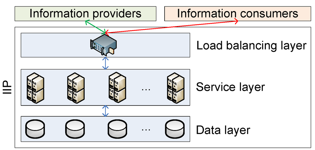 With regard to high availability and scalability, a simple three-layer system architecture is used by the IIP for deployment, as shown in Figure 5.