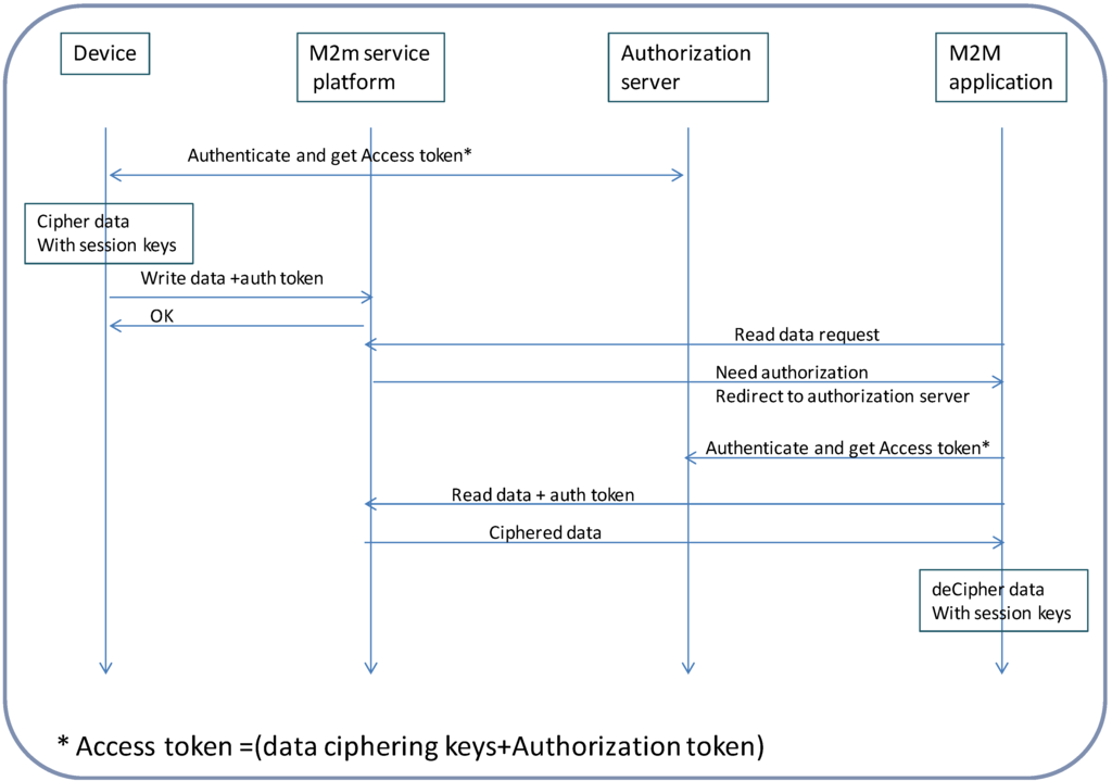 - Creation of trust between entities shall be transparent for (a), (b), (c) and (d). Based on the resulting security credentials, end to end security between M2M applications and encryption/decryption in each of (a), (b), (c) and (d) can be done;