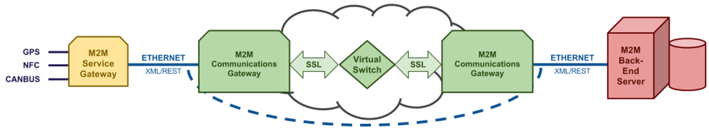 Interoperability with existing systems and resource constrained embedded devices are usually approached via gateways of some sort. For example, the functional architecture designed by ETSI M2M [57], Cisco [58], AnyBridge [59], Systech [60], Alcatel Lucent [61] and IOT-A relies on the use of a kind of M2M gateway mainly because of challenges related to communication with constrained devices. Such a M2M gateway can handle e.g., the issues related to communicating with a system based on an incompatible communication protocol, low-power devices which are unable to communicate with the rest of the system directly due to limited resources or capabilities, or communication with a domain in which the access is otherwise restricted by some service provider. Thus, the gateway can act as a translating and security element, which can interconnect two systems having different protocols and data formats and perhaps belonging to different security domains. Such gateway component may not be optimal from communication point of view, but it is required in some cases because of interoperability and security.