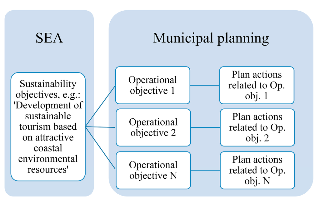 Under this perspective, SEA is intrinsically founded on the sustainability paradigm, and a SEA-oriented plan or program is a plan or program based on sustainability-related objectives. These objectives are integrated into the plan’s or program’s strategy, which should include social and economic development-related objectives as well [6].