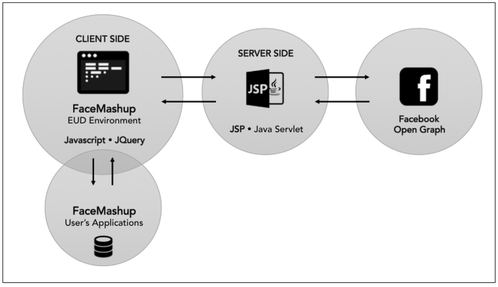 Figure 10 shows the overall architecture of FaceMashup. The tool consists of a client-side part that is responsible for supporting the user interaction, while the server side part maintains the application state.