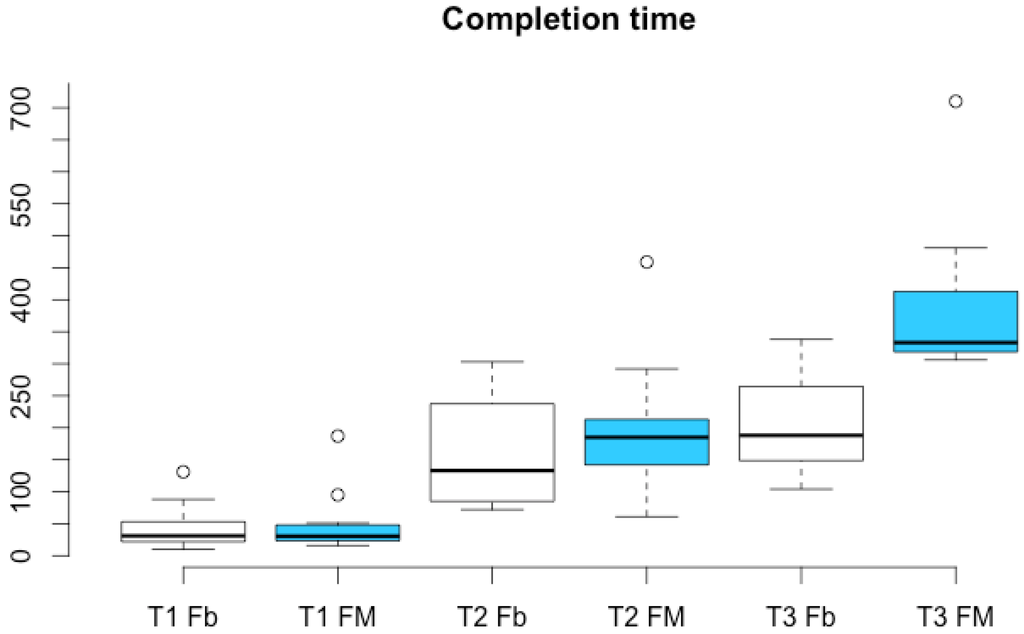 Figure 11 shows the completion time for all tasks, compared with the time needed for the pre-planning with the Facebook UI. For T1 and T2, the planning and the completion time are similar (respectively about one and three minutes). For T3, the planning took about 3.5 min (