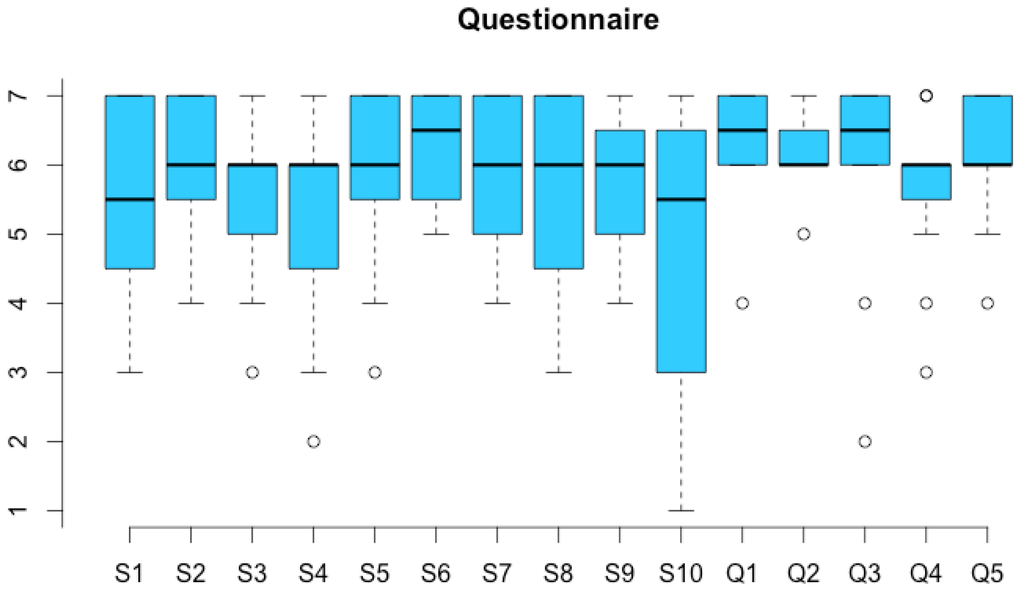 Figure 12 summarizes the results of the first part of the questionnaire. All questions received high mean ratings. The mean SUS [