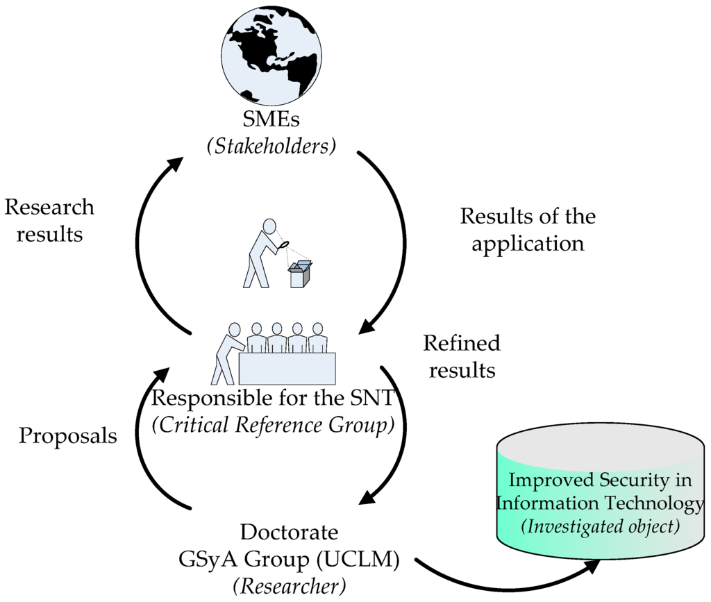 - The fourth participant—the beneficiary, which consists of those organizations that may benefit from the results of the work, i.e. all those small and medium-sized companies that might wish to apply advanced information security management methods to their information systems in order to improve the security of their information technology products and processes in a controlled and methodical manner. The results obtained after carting out this research will improve the efficiency of the installation and maintenance processes of information security management systems. The principal beneficiaries will therefore be all those companies that are linked to the critical reference group.