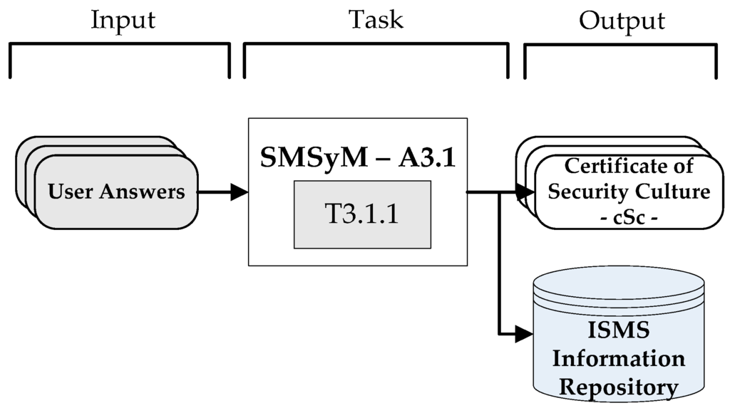 An Information Security Management System (ISMS) can be defined as a management system that is used to establish and maintain a secure environment for information. The principal objective of ISMSs is to tackle the putting into practice and maintenance of the processes and procedures needed to manage the security of information technologies [1,2,3,4,5]. Dhillon [6] states that ISMSs are concerned not only with the security of information but also include the management of that information’s formal and informal aspects [7]. These actions include the identification of the information’s security needs and the putting into practice of strategies in order to satisfy those needs, measure the results and improve the protection strategies [8,9].
