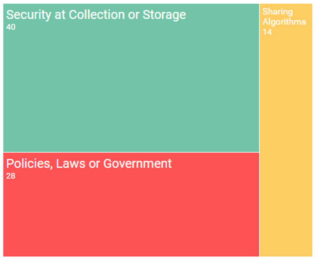 This section focuses on what to do once the data is contained in the Big Data environment. It not only shows how to secure the data that is stored in the Big Data system, but also how to share that data. We shall also discuss the different policies and legislation that authors suggest in order to use Big Data techniques safely. Figure 5 contains a graphic that shows the topics that will be discussed in this section, along with the quantity of papers found for each specific topic.