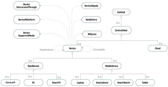 - Context_property: Each context category has specific context properties. For example, the device-related context is a collection of parameters (memory size, CPU power, bandwidth, battery lifecycle, etc.). Some context parameters may use semantically-related terms, e.g., CPU power, CPU speed.