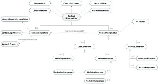 A context constraint is defined through the terms context parameters and context expression, which is further categorized by simple expression and/or composite expression, thus forming a multi-level context ontology as shown in Figure 10.
