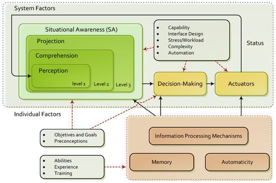 - Endsley, N.R. Design and Evaluation for Situation Awareness Enhancement. In Proceedings of the Human Factors and Ergonomics Society Annual Meeting, Anaheim, CA, USA, 24–28 October 1988; Volume 32, pp. 97–101.