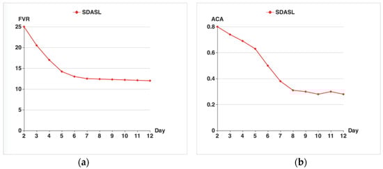 Relationship between FVR, ACA, and time in the SDASL model; (a) Description of the change of the FVR; (b) Description of the change of ACA.