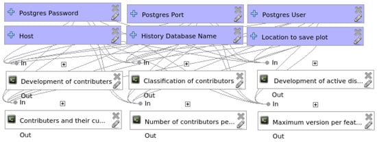 To summarize, researchers have used various established assessment methods by comparing OSM with authoritative datasets. However, very few studies have reported on the fitness-of-use of the dataset in developing countries [,,,,] using established quality indicators. The established methods are unsuitable to assess OSM data quality in the case of the non-availability of authoritative data []. Hence, assessment through intrinsic quality indicators would certainly encourage researchers to have a deeper understanding of datasets. The recent developments of OSM have witnessed intrinsic quality indicators to assess the data using history files [,,,]. Three frameworks have been developed on these lines by Barron et al. [], Ballatore and Zipf [] and Rehrl and Gröchenig []. However, these frameworks suffer from various issues that pose a challenge before the researchers extend existing tools and identify more indicators to assess datasets. This study offers an extension to the processing toolbox of the QGIS framework for sufficiently assessing the data quality based on the intrinsic parameters by providing easy-to-use workflow models.