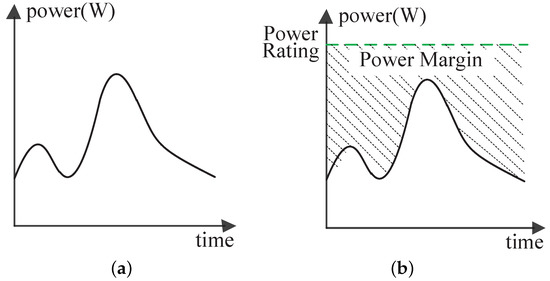 Power margin. (a) Server’s power demand; (b) Setting power budget at power rating.