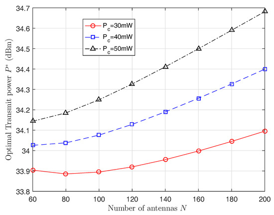 Given N, the optimal transmit power which maximizes the EE is given as