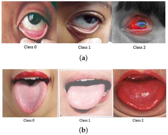At present, computer aided diagnostics (CAD) and POC applications are aimed at providing quick “expert” diagnostics for screening and resourcefulness of treatment and care-delivery protocols. Some well-known CAD systems include screening systems for diabetic retinopathy [7], hypertensive risk [8] and pathology detected using digital chest radiographs [9]. However, no screening system has been developed for anemia-related risk assessment till date. This work is aimed at utilizing facial pallor site images with varying severities, such as close-up images from eyes and tongue for anemia-like medical screening applications as shown in Figure 1. It is noteworthy that the pallor-specific features under analysis in this work are patient demographics independent, motivated by domain knowledge and focused on regions signifying the flushed appearance of underlying blood vessels as opposed to skin-based pallor detections.