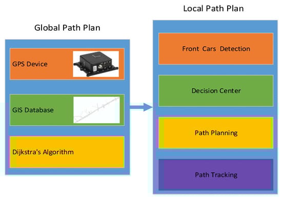 A feasible trajectory is based on quadratic programming (QP); it is proposed in [] for path planning in three-dimensional space. Here an autonomous vehicle is requested to pursue a target for avoiding static or dynamic obstacles. Though the car can avoid static or dynamic obstacles, it’d better to drive in the center of lane a method [] is proposed based on vision, long-distance lane perception and front vehicle location detection, but it is applied to a special environment (two-lane highways). Sensor technology trials are studied to minimize blind spots around their truck [], while on the other hand, keeping the driver’s vigilance at a sufficiently high level. The sensor is also an essential part to apply in path planning an intelligent control system is proposed by the fuzzy-neural network (FNN) for autonomous vehicles [], and the autonomous vehicles recognize and judge the running environment appropriately and automatically, and run along a given orbit by using FNN, which is a good reference for decision with regard to driving behavior.