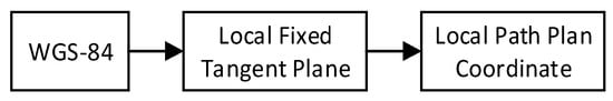 Due to the fact that the coordinate of local path planning is different from global path planning, the WGS-84 coordinate system is transferred to the local path plan coordinate, and the converting sequence is shown in Figure 8.