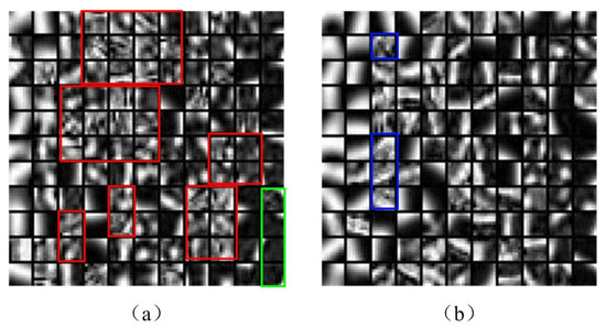 When the informative image blocks are selected, the K-SVD algorithm can be implemented for dictionary learning. The dictionary learning results with all image blocks and only the informative image blocks are shown in Figure 1.
