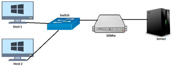 - The SDMw system may be used effectively as a Firewall. Since the SDMw system acts like a proxy, it can inspect incoming packets and decide whether to allow the packet into the external network or not. Unlike traditional firewalls, our proposed SDMw system can implement firewall rules based on either a single machine or a port or groups of hosts.