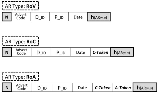 As depicted in Figure 3, all supported Ad-Report types incorporate a sequence number N which indicates the order in which the reports were created. The Advert Code is a unique reference number that is sent to the user alongside each advert and can be used for identification. The and respectively accommodate the identities of the Ad-Dealer who distributed the advert and the Publisher who featured it to the user while the Date field holds the date and time of the publication.