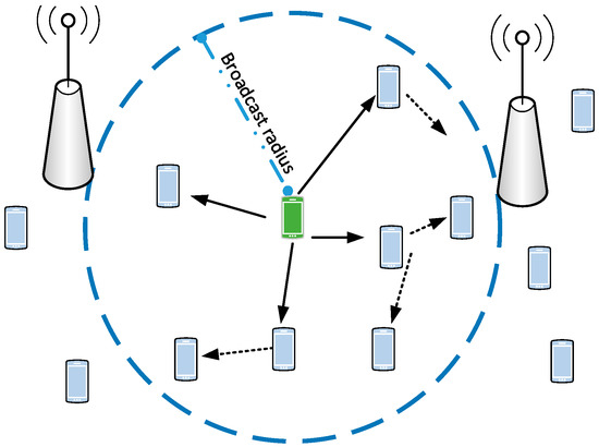 - Nardini, G.; Stea, G.; Virdis, A.; Sabella, D.; Caretti, M. Broadcasting in LTE-Advanced networks using multihop D2D communications. In Proceedings of the 2016 IEEE 27th Annual International Symposium on Personal, Indoor, and Mobile Radio Communications (PIMRC), Valencia, Spain, 4–8 September 2016. [Google Scholar] [CrossRef]