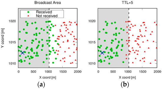 - Williams, B.; Camp, T. Comparison of broadcasting techniques for mobile ad hoc networks. In Proceedings of the MOBIHOC ′02—3rd ACM International Symposium on Mobile Ad Hoc Networking & Computing, Lausanne, Switzerland, 9–11 June 2002. [Google Scholar]