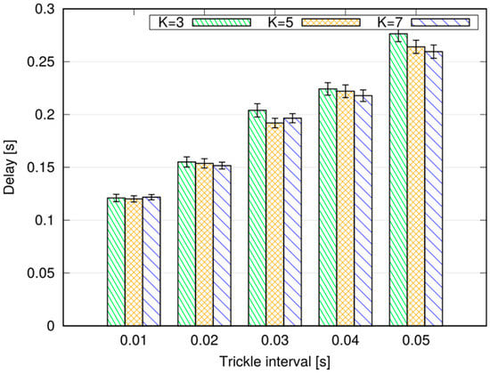 95th percentile of application-level delay with different settings of the Trickle algorithm.