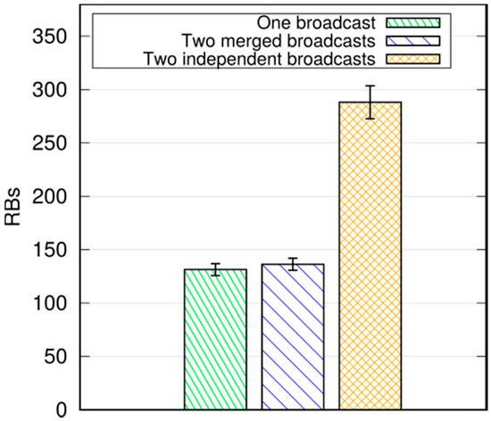 Avg. allocated RBs per broadcast with multiple broadcast sources.