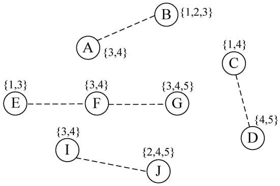 The fundamental idea of the BPSR algorithm is as follows: for all link (u,v) of , if the link (u,v) is allocated a channel, then the link keeps the same allocated channel. If the link (u,v) is not allocated a channel, then the following strategy is used to allocate the channel. The channel is selected according to Equation (18).