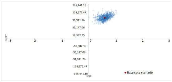 Given that the inputs of the model are subject to uncertainty, the impact of various parameters on the results has been analyzed. A one-way deterministic sensitivity analysis (DSA) was conducted to test the robustness of the model and identify the most influential parameters, as well as to evaluate their impact on the results. Table 1 presents the parameters that were subjected to a deterministic sensitivity analysis. The confidence interval limits for HRs were extracted from the meta-analysis conducted by Franken et al. (2019) [], while those for utilities were derived from the research of Tran et al. 2018 []. A rate of ±20% was applied to the other parameters in accordance with INEAS guidelines [].
