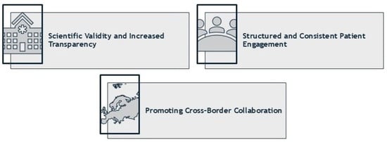 We anticipate that implementing a patient engagement framework based on a modified Delphi panel methodology for PICO scoping will provide several key benefits. As outlined in Section 5, Delphi panels are a scientifically validated approach for fostering stakeholder collaboration in policy development, aligning with the recommendations of the HTAi and ISPOR Task Forces on deliberative processes in HTA. We expect a patient engagement framework based on the modified Delphi panel methodology to (1) foster scientific validity and increases transparency, (2) establish a structured and consistent patient engagement framework, and (3) promote collaboration across EU countries, ultimately strengthening the European HTA landscape and supporting equitable access to innovation (Figure 4). The expected benefits and anticipated challenges of patient engagement in PICO scoping are presented in detail below.
