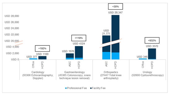 - Avalere Health. Medicare Payment Differentials Across Outpatient Settings of Care. Physicians Advocacy Institute, 2016. Available online: https://www.physiciansadvocacyinstitute.org/Portals/0/assets/docs/Payment-Differentials-Across-Settings.pdf (accessed on 6 December 2024).