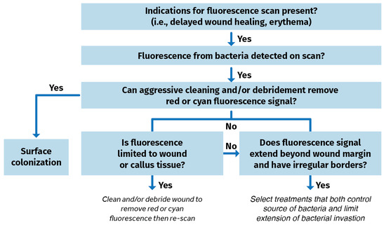 Clinical decision tree using fluorescence imaging information to identify bacterial burden in wounds [56].