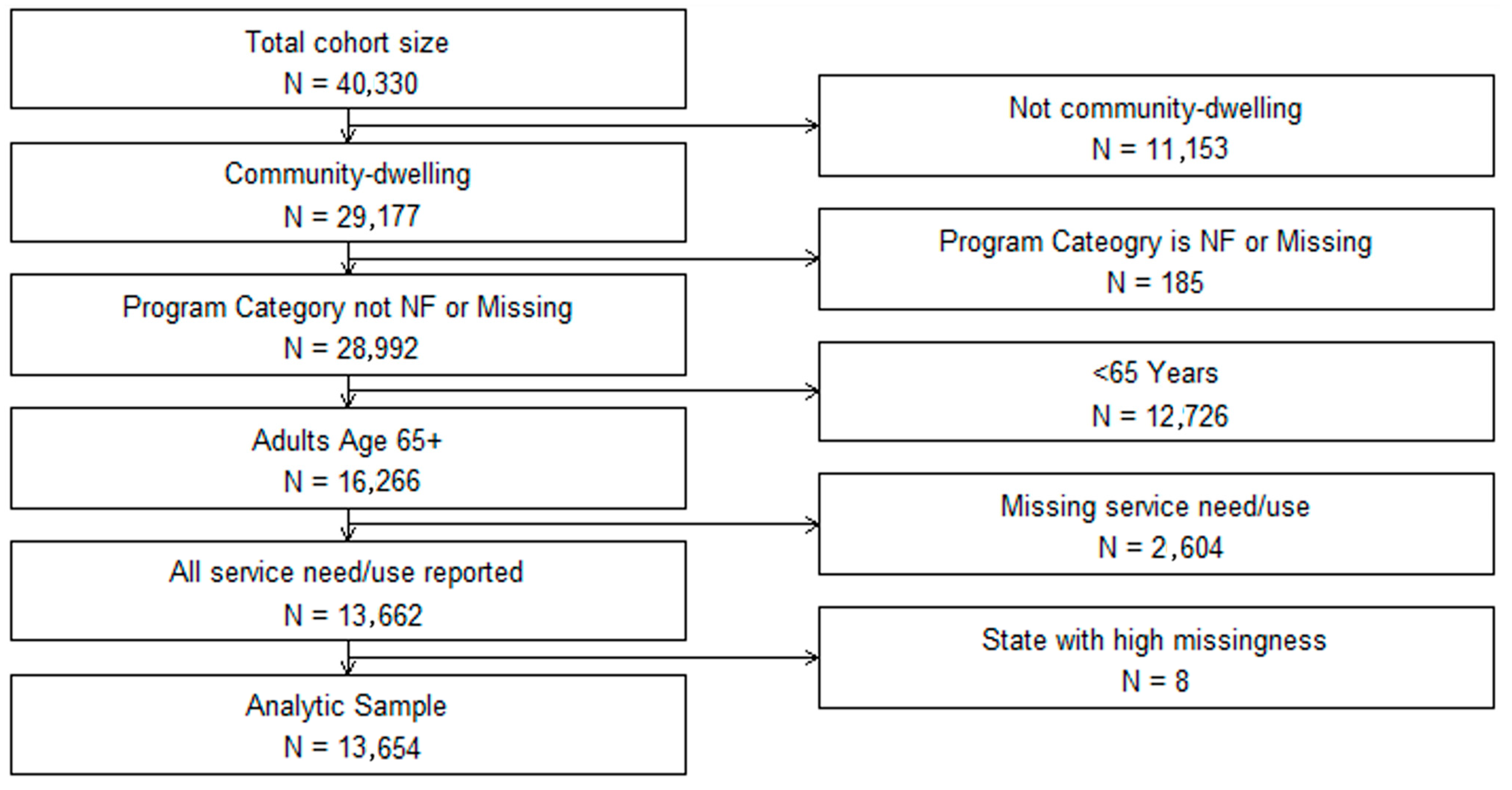 - Fabius, C.D.; Parikh, R.; Wolf, J.M.; Giordano, S.; Fashaw-Walters, S.; Jutkowitz, E.; Shippee, T. Racial and ethnic differences in unmet needs among older adults receiving publicly-funded home and community-based services. J. Am. Geriatr. Soc. 2024, 72, 3520–3529. [Google Scholar] [CrossRef] [PubMed] [PubMed Central]