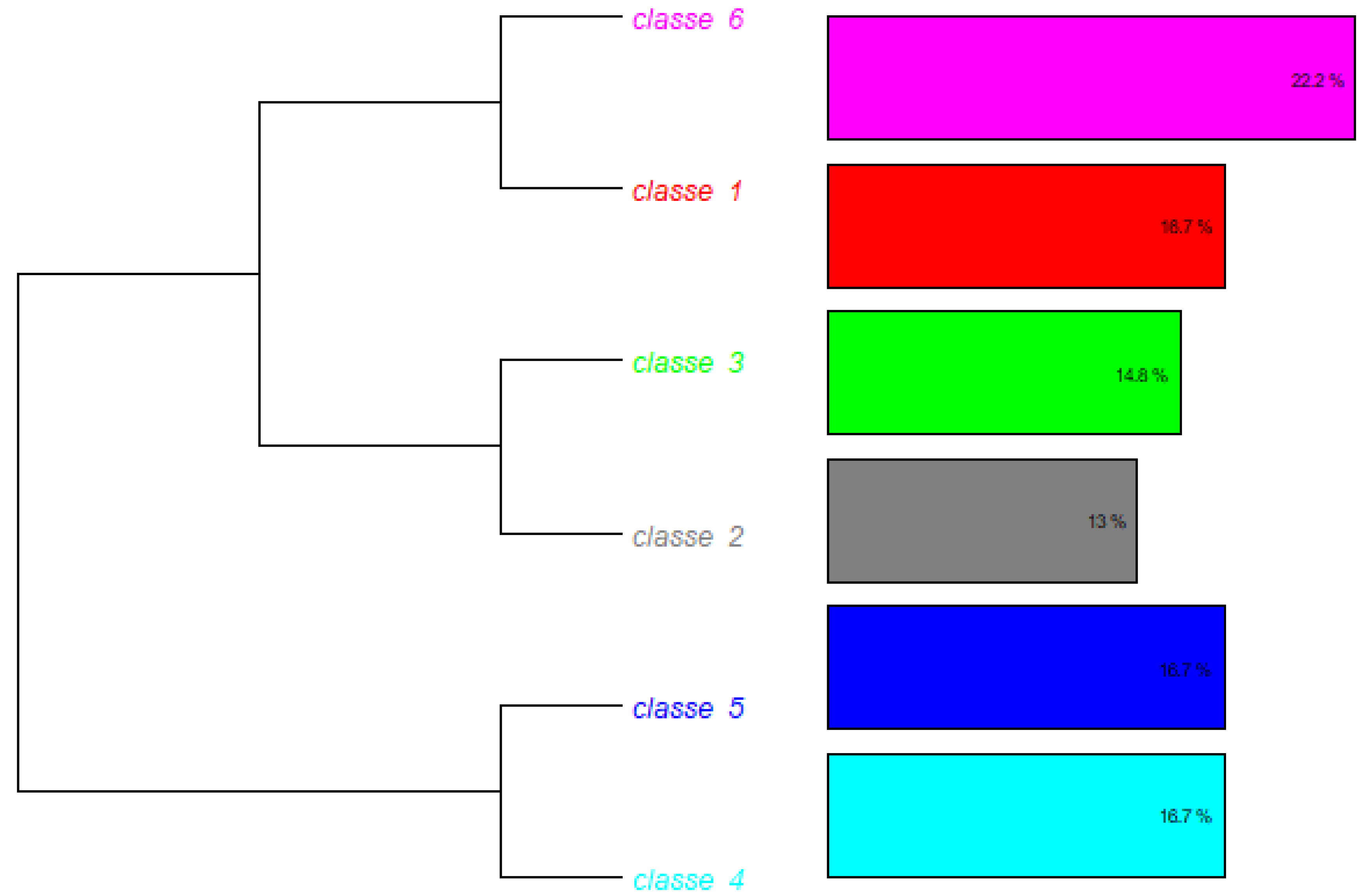 The hierarchy represented in the dendrogram shows how the classes were divided from a common trunk, reflecting the semantic proximity between them. Class 4 and Class 5 are closer together, indicating a thematic relationship between regulatory challenges and standards management. Class 2 and Class 3 also show proximity, suggesting that the themes of operations and international expansion are interconnected. And Class 1 and Class 6 share a focus on strategies and economic conditions, but with different approaches.
