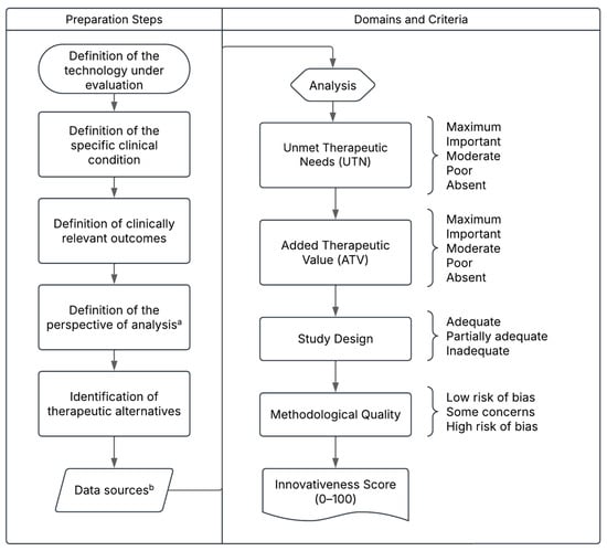 Each domain was assigned a weight that reflects its relative importance in determining innovativeness: ATV (35%), UTN (25%), MQ (20%), and SD (20%) [13]. However, these weights may be adapted to reflect local preferences or policy priorities, depending on the decision-making context and therapeutic area. Within each domain, the total weight is distributed across pre-established levels, each corresponding to a qualitative classification that is translated into a quantitative score.