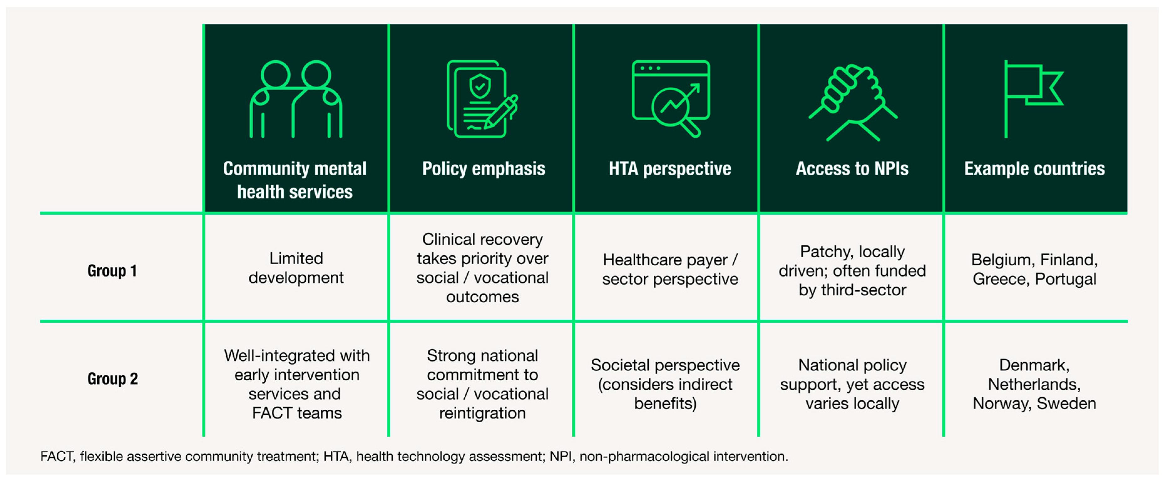 Limited value-based reimbursement. Although European clinical guidelines recommend integrating psychosocial interventions such as social skills training and cognitive behavioural therapy alongside pharmacological treatment, reimbursement systems typically do not support these approaches [