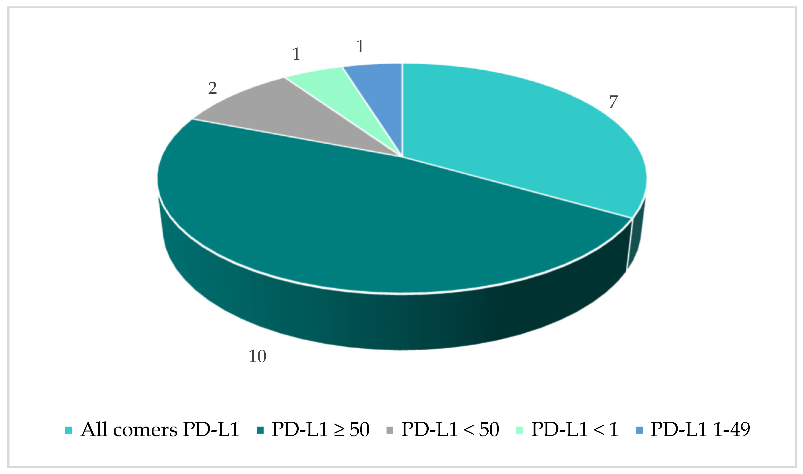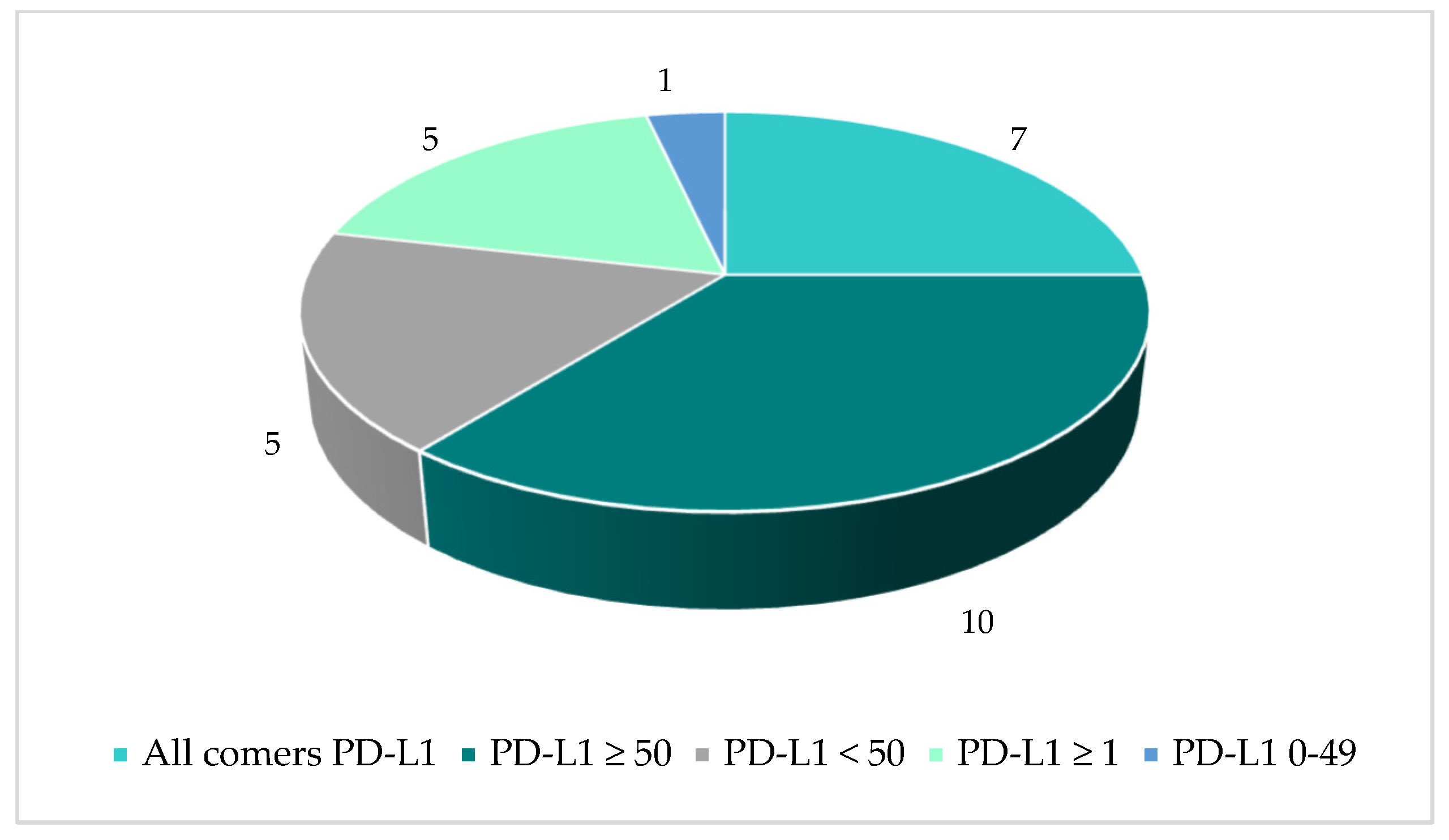 - Hendriks, L.E.; Kerr, K.M.; Menis, J.; Mok, T.S.; Nestle, U.; Passaro, A.; Peters, S.; Planchard, D.; Smit, E.F.; Solomon, B.J.; et al. Non-oncogene-addicted metastatic non-small-cell lung cancer: ESMO Clinical Practice Guideline for diagnosis, treatment and follow-up. Ann. Oncol. 2023, 34, 358–376. [Google Scholar] [CrossRef] [PubMed]